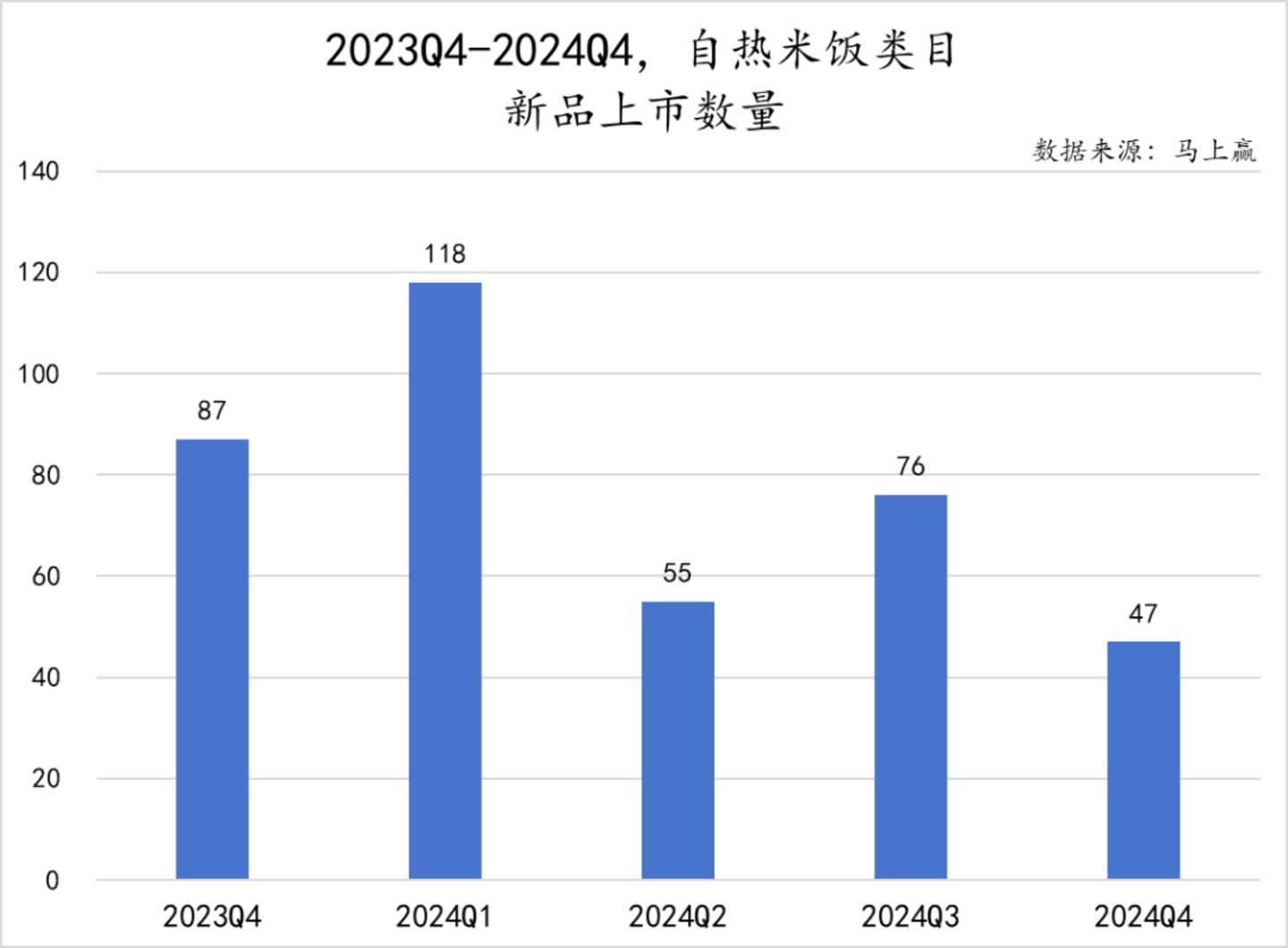 从新品上市数量来看,自热米饭类目在2023年Q4至2024年Q4期间的新品上市数量波动较为明显,呈现出季节性变化。2024年Q1新品数量增幅显著,上升至118款,进入2024年Q2后又急剧下降至55款,2024年Q3略有回升后在2024年Q4再次减少至47款,但从同比来看,2024Q4的47款新品同比2023Q4的87款,仍有接近50%的新品数量下降,类目整体发展还需进一步观察。