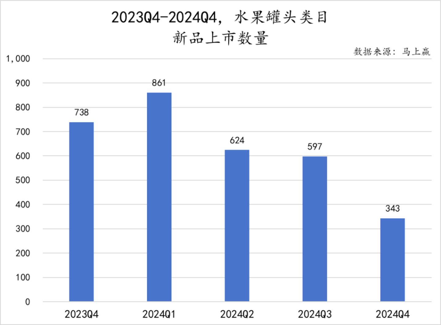 从新品上市数量来看,水果罐头类目仅在2024年Q1推出新品数量有所增加,往后陆续减少,2024年Q4同比减少一半以上,水果罐头市场在新品推出方面的活跃度有所下降。
