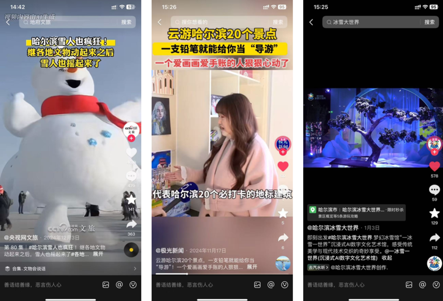 朱明所说的情况或正是当前冰雪经济困境的缩影,为加速助推国内冰雪经济发展,AI正持续赋能冰雪经济。比如,DeepSeek给出的东三省旅游攻略、央视为哈尔滨制作的AI宣传视频、哈尔滨淘学企鹅——AI淘淘、AI让哈尔滨雪人“摇起来”、哈尔滨冰雪大世界打造的AI数字文化体验馆、冰城攻略AI智能铅笔等等。换言之,AI正渗透到冰雪游的全服务流程中。