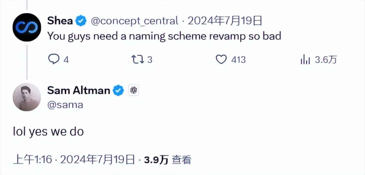 在去年7月,奥特曼就承认ChatGPT需要重新制定命名方案。