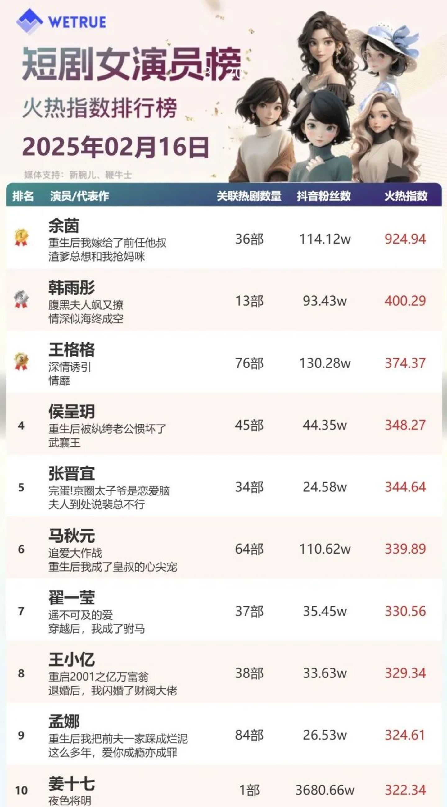 不止如此,经过春节档数百部短剧的激烈角逐之后,围绕短剧演员的讨论也是一波接着一波。网友甚至票选出“短剧圈F4”(赵柯淳、何健麒、曾辉、马小宇),另一边,关于短剧“女神”的讨论也是此起彼伏。不知不觉间,热门短剧演员已然成为新一拨冉冉升起的新星,短剧的高速发展,也加快了短剧演员“上桌”的脚步。