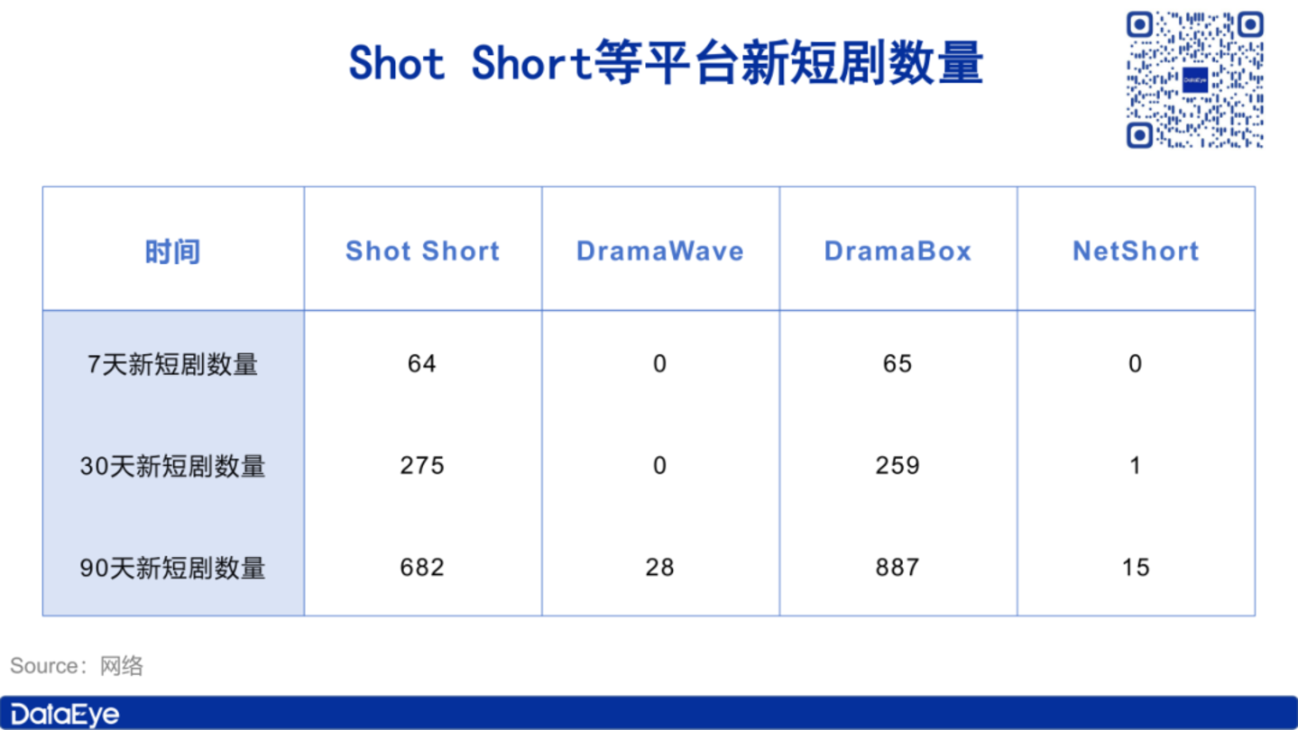 对比发现,Shot Short与DramaBox新短剧数量较高,而DramaWave与NetShort新短剧数量较少。