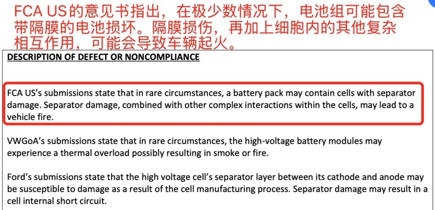 根据召回报告,三星电池单元内的隔膜损坏可能导致热过载或内部短路。克莱斯勒和奥迪表示,受影响的车辆可能会在没有事先警告的情况下发生火灾,而福特车辆可能会在发生故障前显示“立即安全停车”的信息。