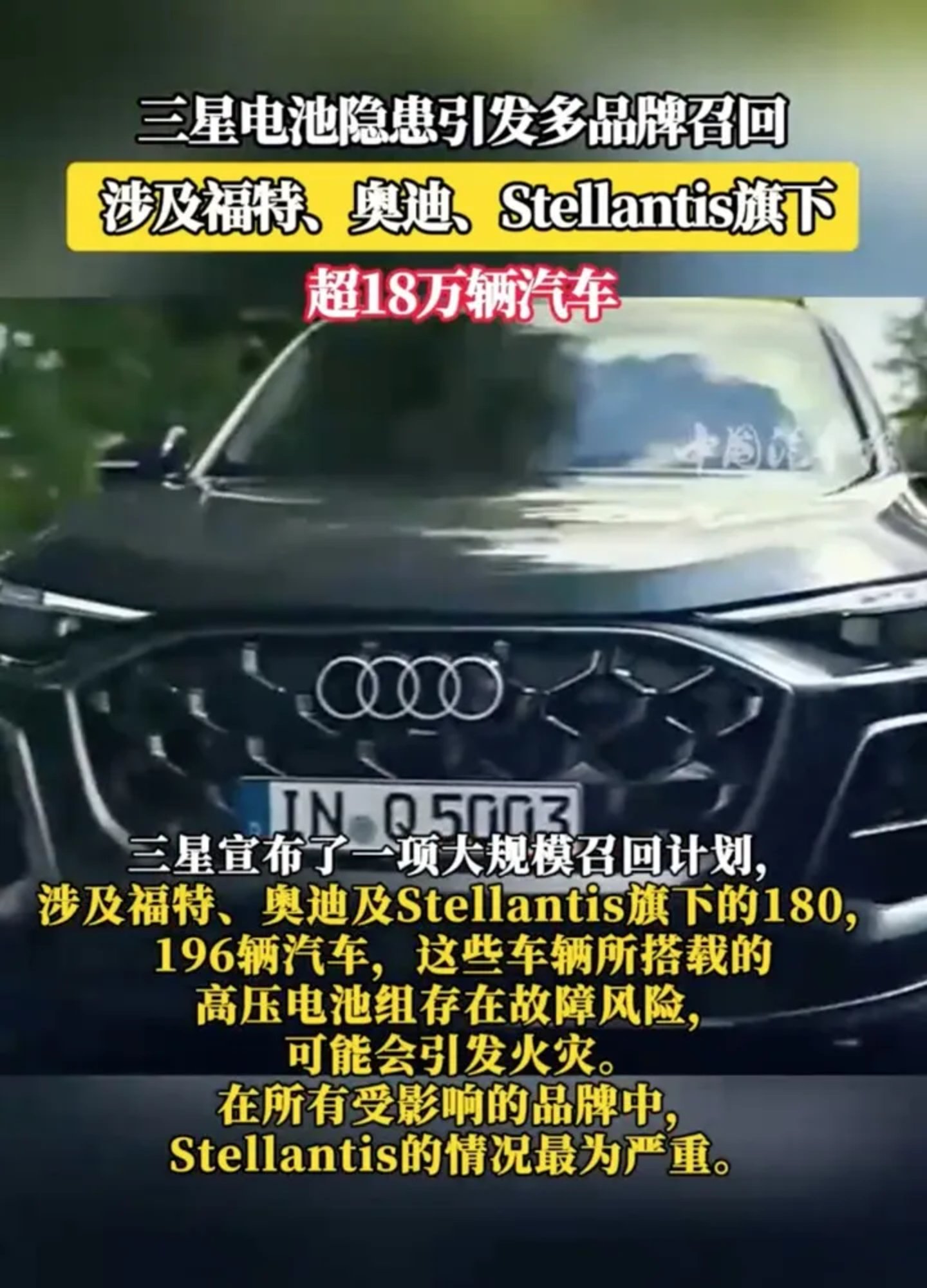 新能源汽车市场方兴未艾,汽车电池安全问题一直是全行业关注的焦点,一点风吹草动,就会引发轩然大波。日前,韩国电池制造商三星SDI宣布了一项大规模召回计划,涉及Jeep、福特、奥迪等多个品牌的180196辆汽车。