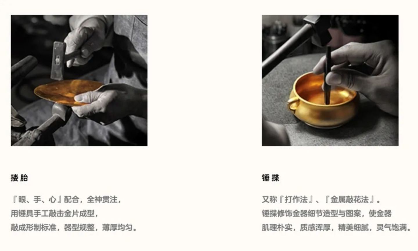 首先,是古法工艺这套产品逻辑;老铺黄金以“古法手工制金”为核心卖点,通过手工耗时打磨,人为制造“稀缺性”。