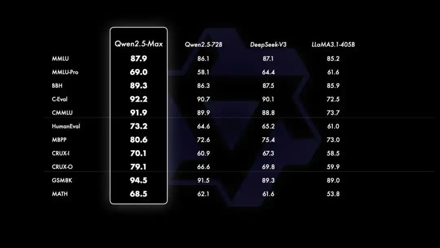 Qwen2.5-Max基准测试成绩