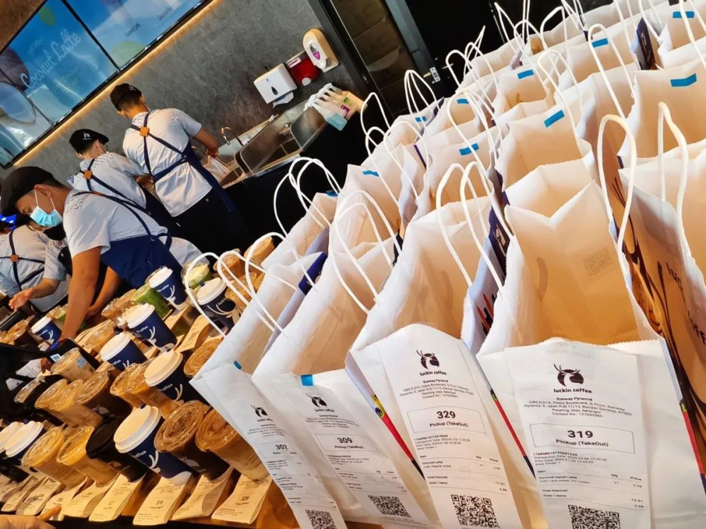 瑞幸进入马来西亚,在当地市场其实已造势已久。初亮相,瑞幸即推出了APP新用户首杯2.99马币(约合人民币4.9元)的促销活动。据《窄播》实地探访,开业当日高峰时段的出杯等候时间可达2小时以上,首日订单数或突破千单。