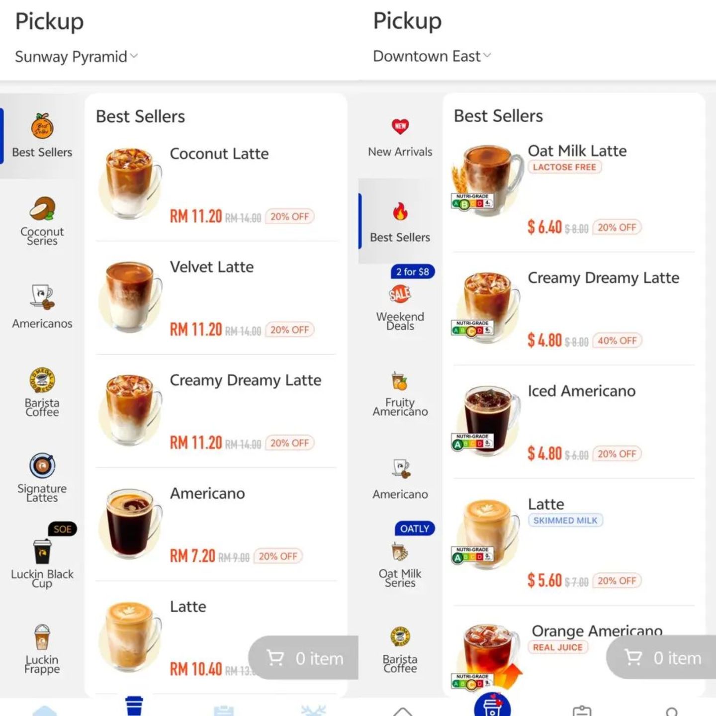 瑞幸在马来西亚共上线了20余款现制咖啡饮品,约为隔壁新加坡门店已上线饮品的一半。生椰拿铁、丝绒拿铁等招牌在列,但诸如橙C美式和柚C美式等部分人气单品还未上架。