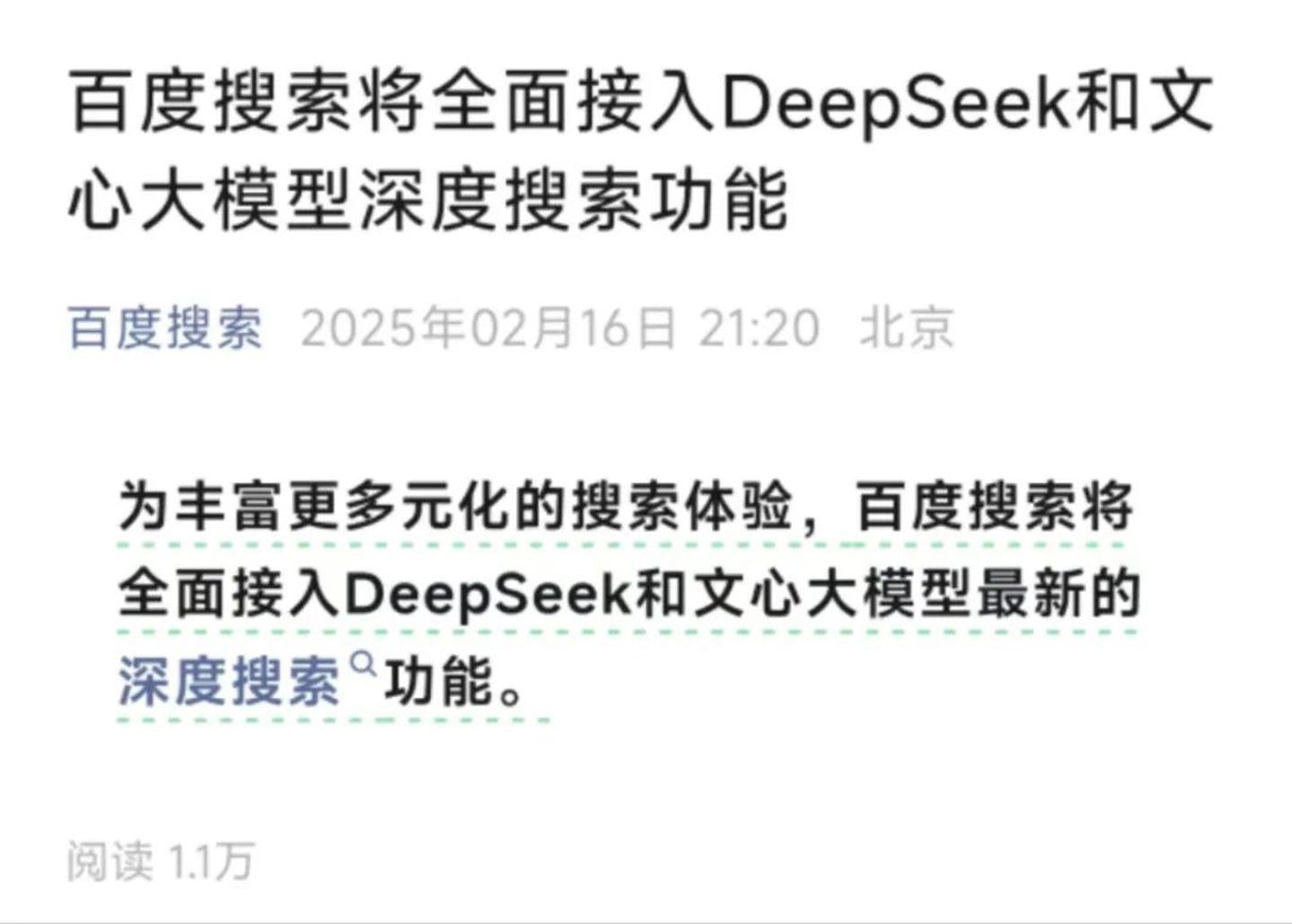 随着腾讯、百度各自最核心产品微信、百度搜索、以及多款AI助手相继接入DeepSeek模型,这对搜索市场所带来的影响,或许也将在未来再次改变多数人的搜索方式与体验。
