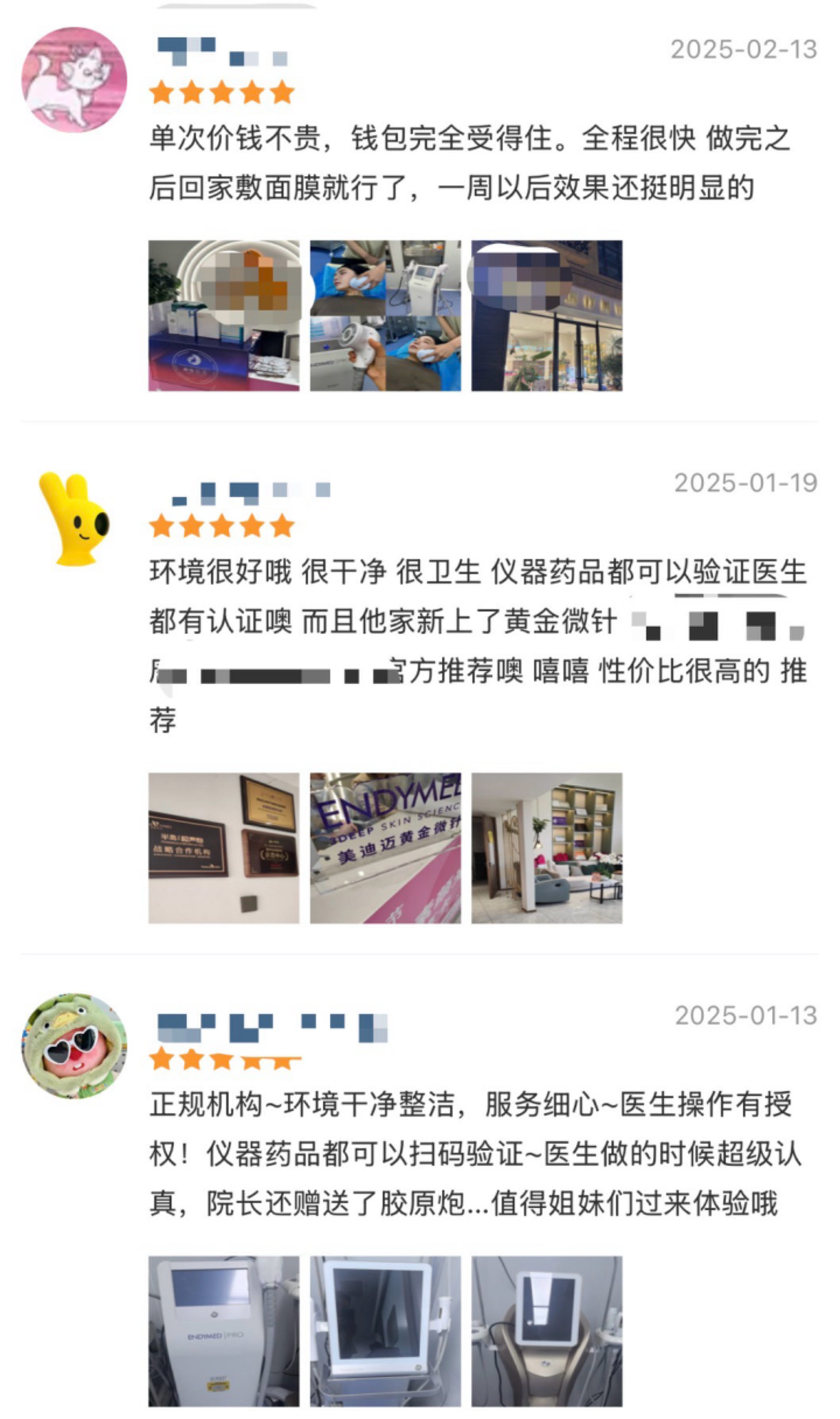 比起做医美要花多少钱,县城阿姨们更在乎项目和机构本身的质量和安全性,除了口口相传的乡土中国逻辑,专业化的第三方平台,常常成为下沉市场消费者对医美机构建立信任感的主要途径,也在监督和推动医美走出“黑作坊”,走向合规时代。