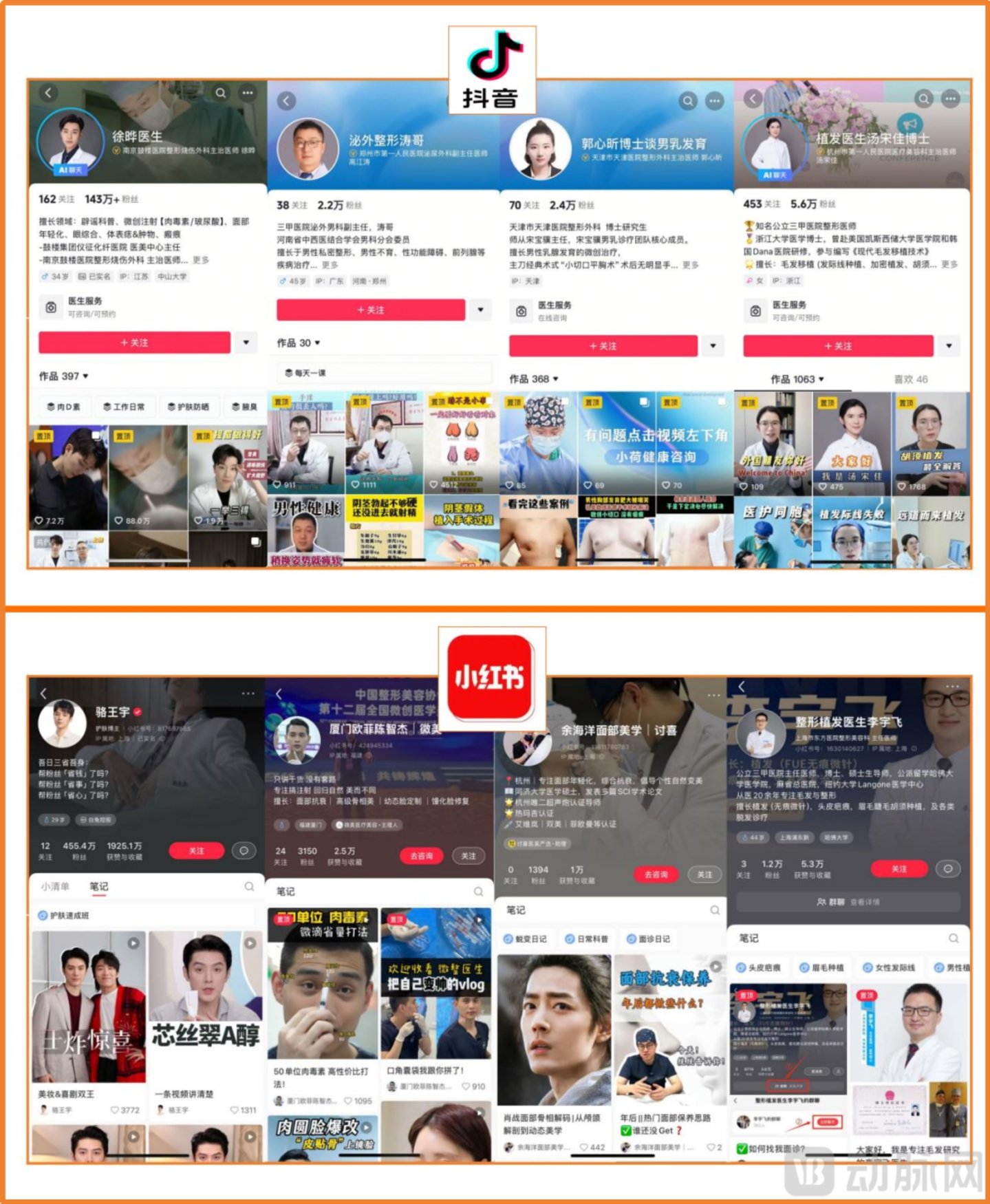 抖音、小红书涉及男性医美内容的部分博主 动脉网制图
