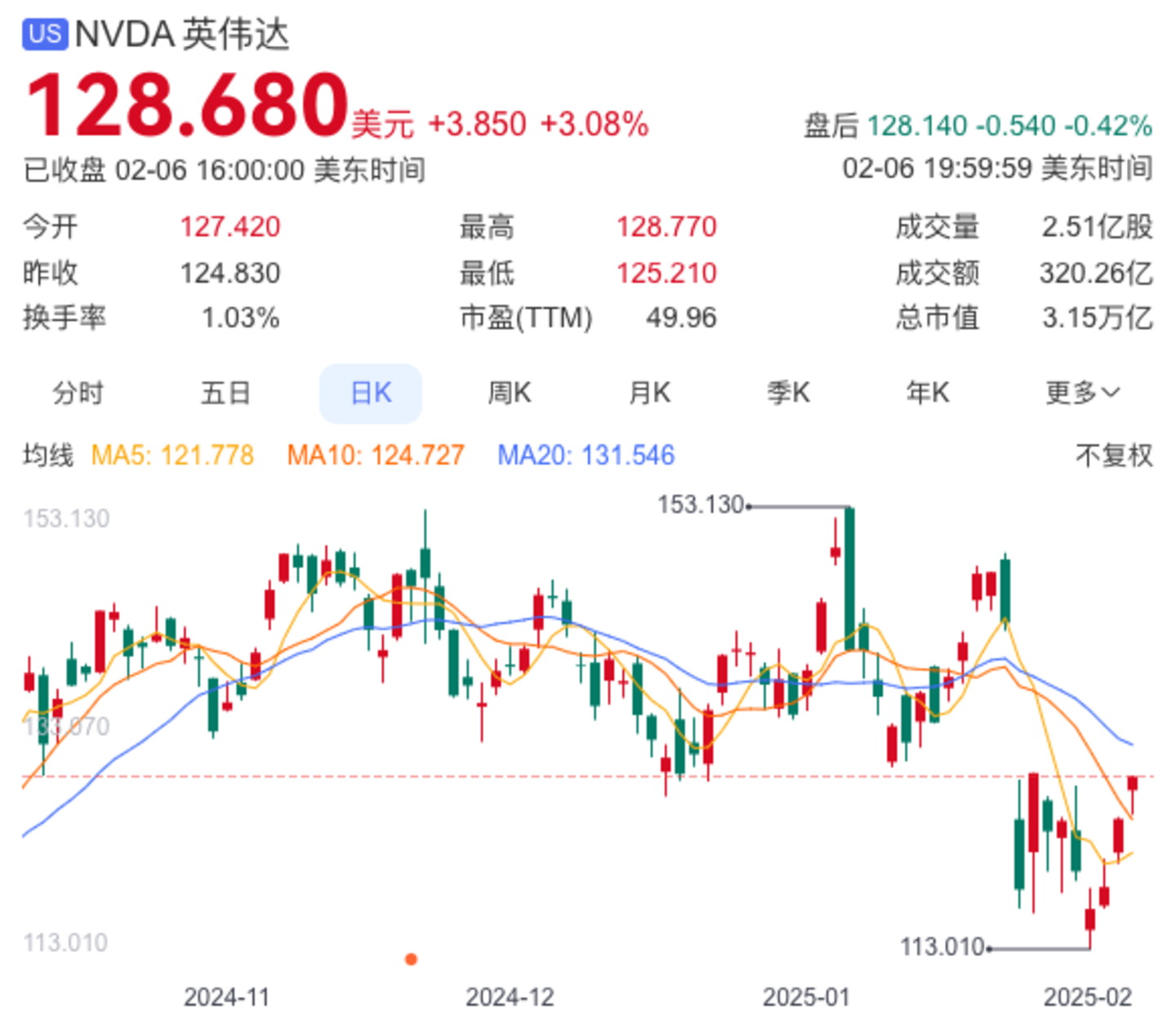 不过近几天,英伟达却走出了“微笑曲线”。2月4~6日,英伟达股价连续三天上涨,累计涨幅达10%,市值重回3万亿美元上方。