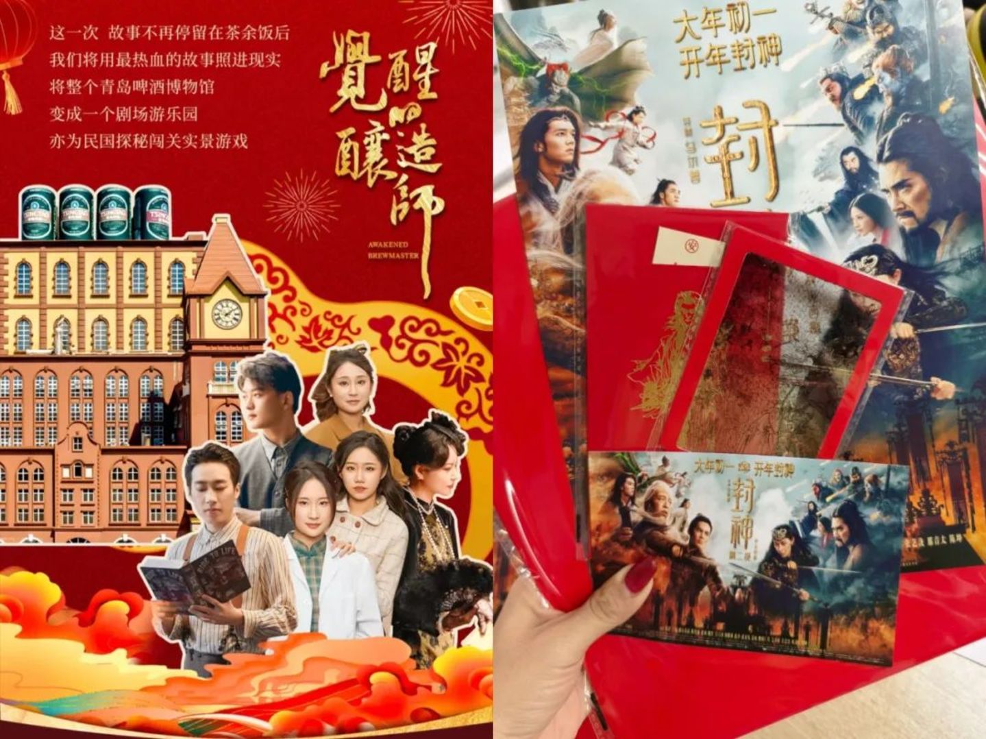 以《长安三万里》为例,通过诗词灯光秀、唐文化节等活动,实现IP与在地消费场景的深度绑定。《封神2》与青岛啤酒博物馆的“换装沉浸剧游票”联动,将电影IP渗透至餐饮、零售环节。未来通过影视IP的全产业链开发,更有望打通从内容创作到场景落地、再到消费转化的闭环。