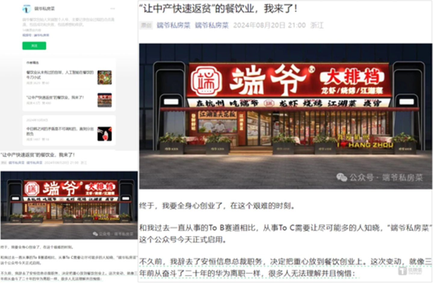 2024年8月,安恒信息原总裁宋端智开办个人公众号并官宣离职,转型餐饮大排档。