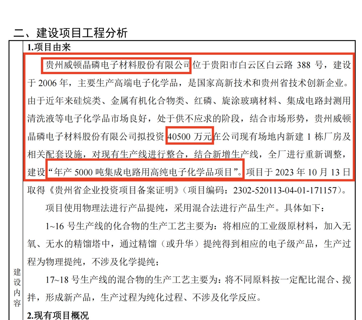 据贵阳当地媒体报道,2月24日,威顿晶磷“年产5000吨集成电路用高纯电子化学品”在贵阳市白云区开工,根据环评报告,该项目计划总投资4.05亿元,这一投资规模占公司总资产的75%。(本文首发于钛媒体APP,作者|张孙明烁)