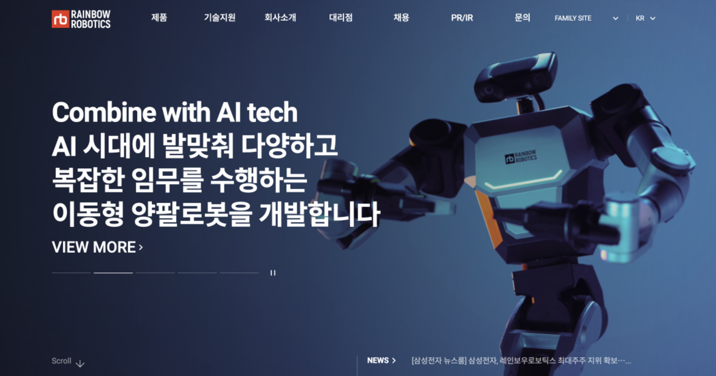 从2023年开始,三星多次投资Rainbow Robotics,到2024年12月,三星已经持有Rainbow Robotics35%的股份,成为Rainbow Robotics的最大股东。