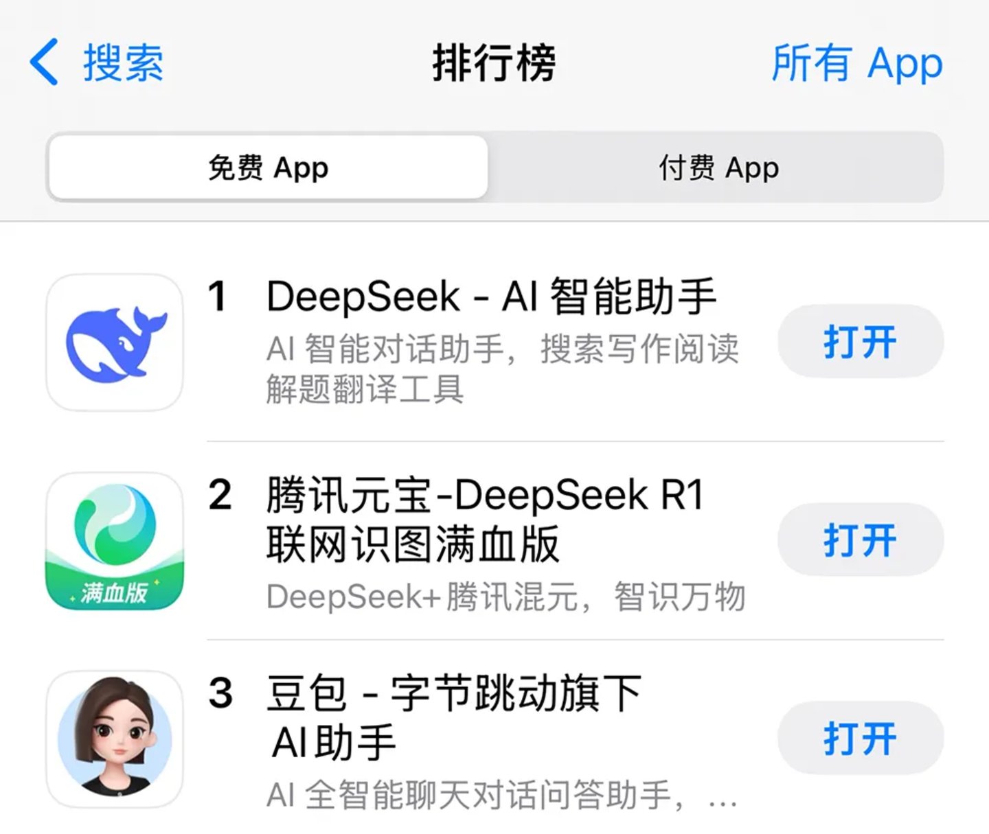 一向淡定稳健的腾讯,在对待AI这件事上,也开始快马加鞭了。曾经没多少存在感的“腾讯元宝”,接入DeepSeek后,下载量激增,从苹果应用商店免费App排行榜200名外直线上升至第二。