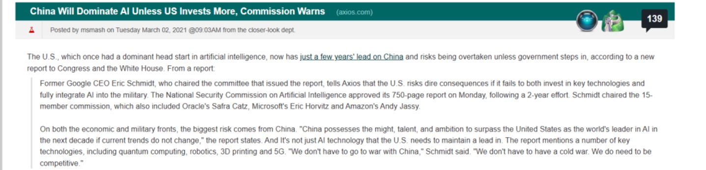 站在更高的维度而言,这是一场持久的大国博弈,AI已经成为数字世界的主权象征。前谷歌CEO埃里克·施密特曾在2019年向白宫递交了一份长达750页的报告,核心观点只有一句话: