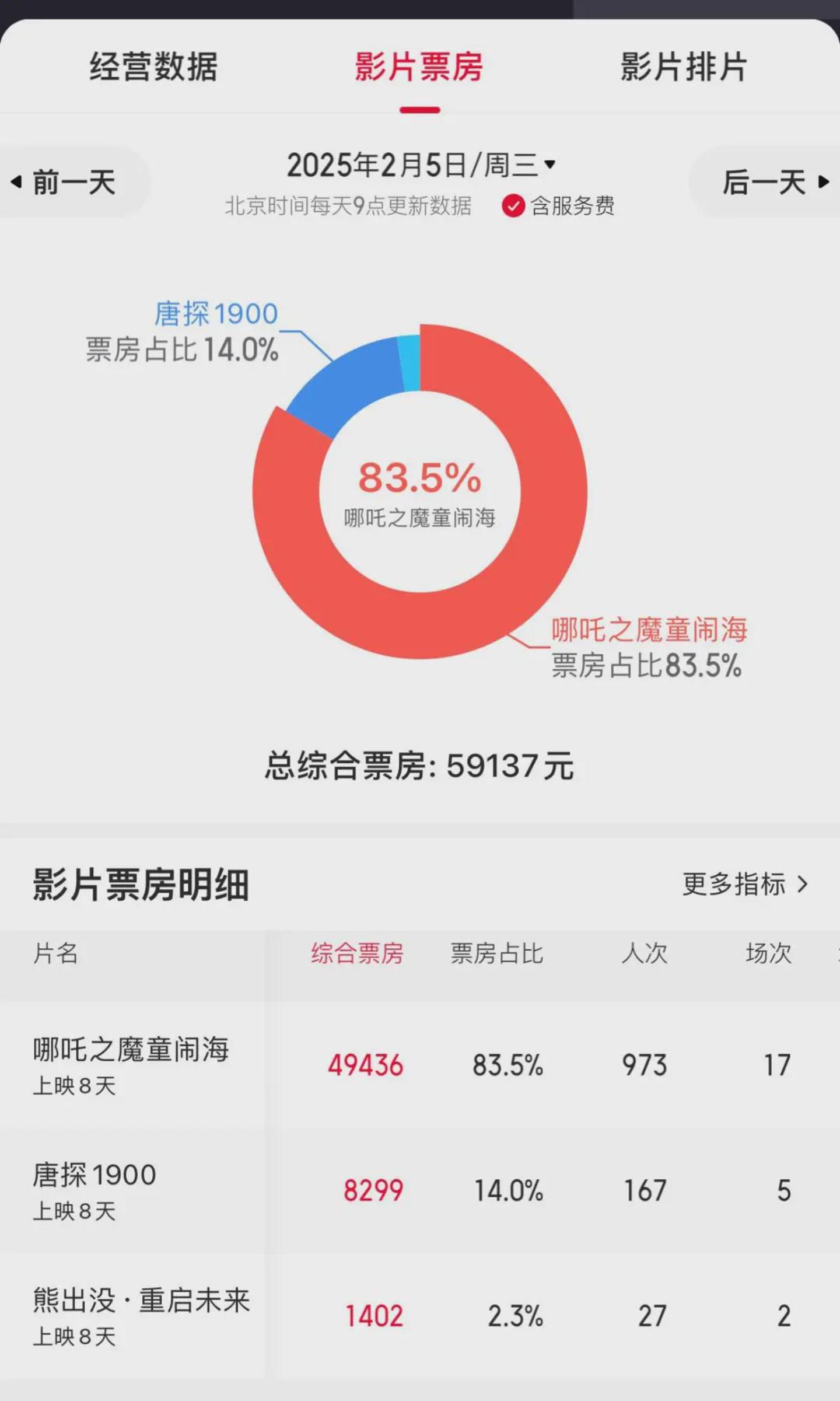 以上海一家已停业影城为例,猫眼专业版显示,这家影城自2月5日(正月初八)开始,每天只排《哪吒2》《唐探1900》和《熊出没》三部影片。《美国队长4》和《诡才之道》在上映当天匆匆排片后又迅速撤排。2月新片中,目前仅有《美国队长4》票房超过1亿。