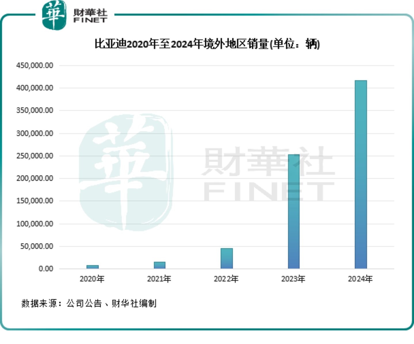 实际上,比亚迪近几年出海的成果也十分显著。根据公司披露,于2024年,公司海外销售量为41.72万辆,同比增长71.9%。而在2022年,公司境外地区销量不到5万辆。
