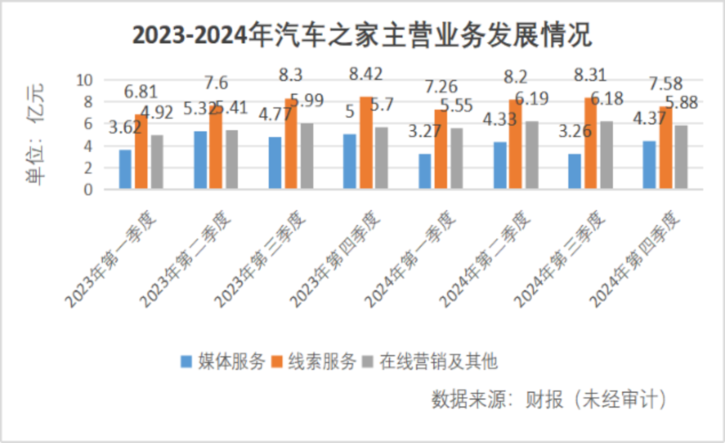 按季度统计三大主业的运营情况,不难发现下滑的主要点位是媒体服务,线索服务以及在线营销及其他均有不同程度的增长。对此,中信证券曾发布报告表示,汽车之家新能源零售、二手车等新兴业务的探索初见成效,预计中长期能够保持行业内龙头地位。