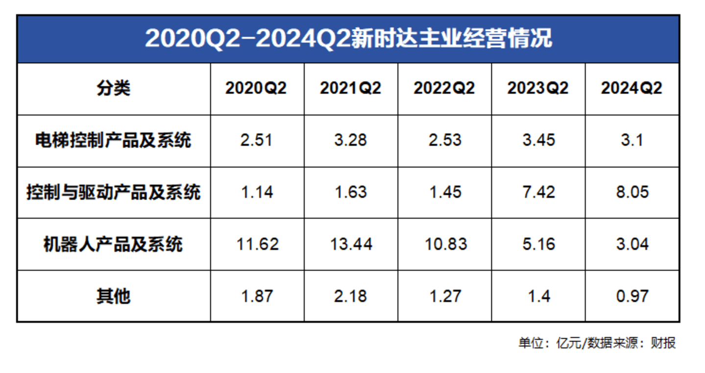 公开信息显示,新时达的主业由电梯控制、控制与驱动、机器人、其他四大板块构成。虽然在建筑行业,其电梯业务品牌影响力较为突出,但在上游需求侧进入深度调整的背景下,额度与业绩占比均在下滑。