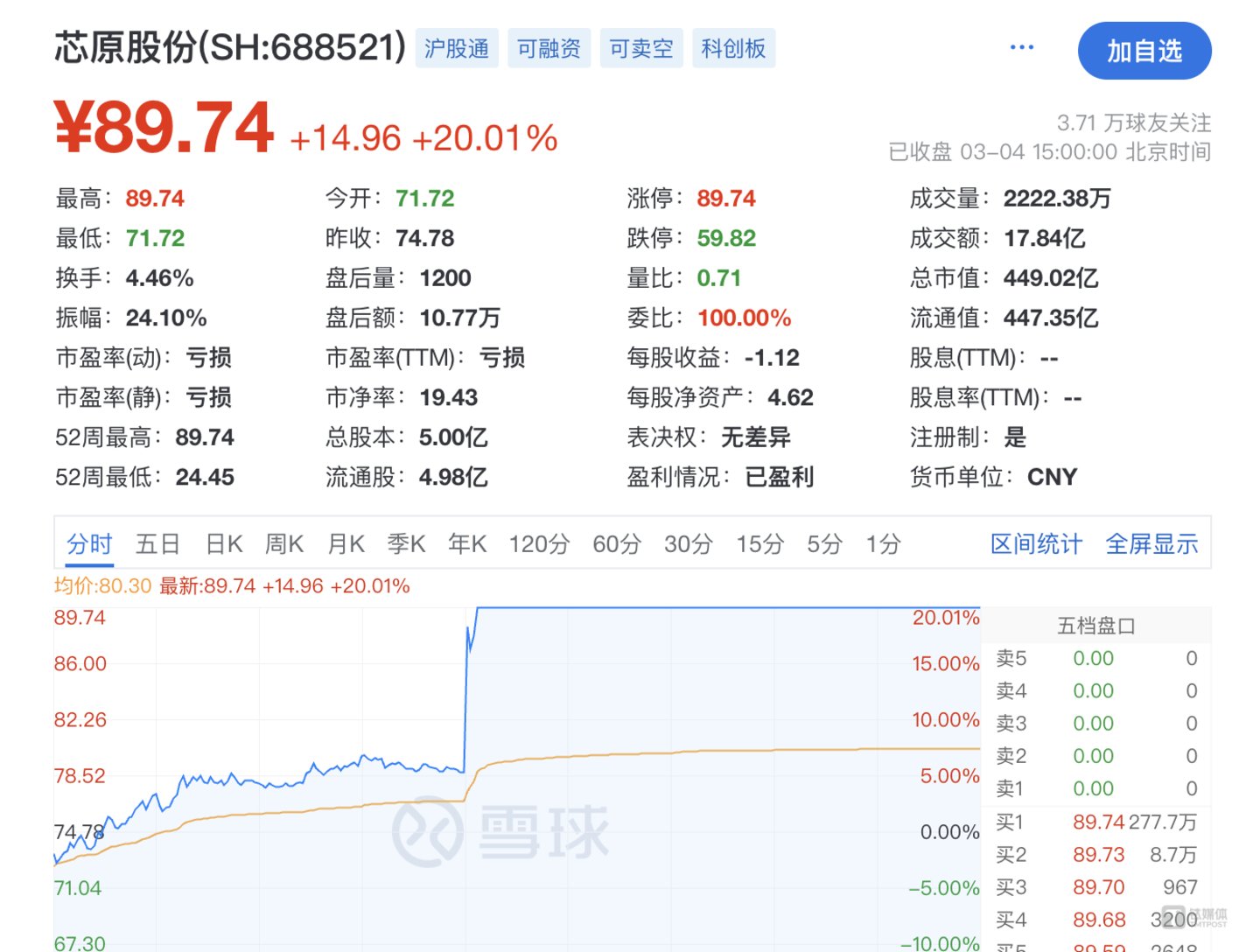 截至3月4日收盘,芯原股份(688521.SH)、安路科技双双20%涨停,全志科技、翱捷科技、北京君正、华大九天等涨超10%。