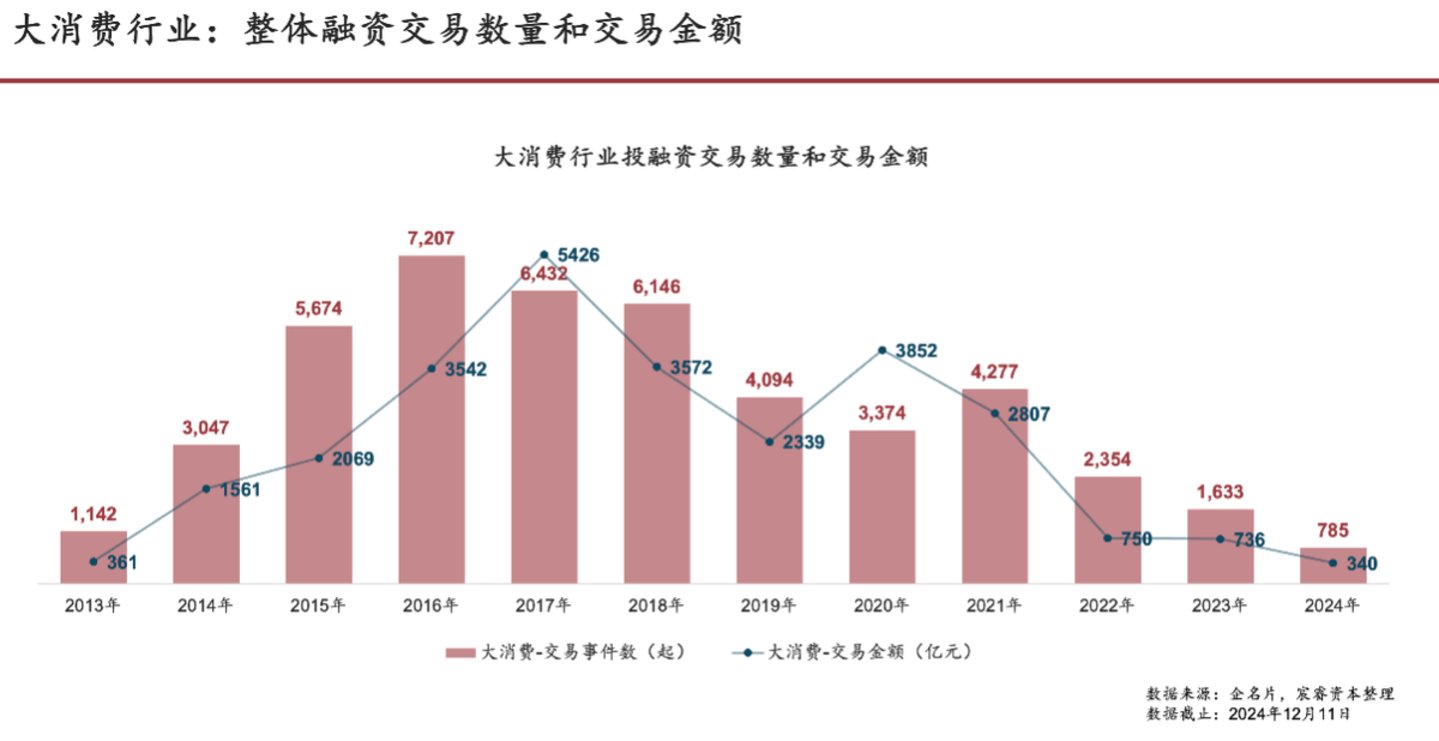 从宸睿资本发布的报告可以看出,过去12年里,大消费行业整体融资交易呈“过山车”式变化,近四年投融资交易事件和交易金额持续下滑。
