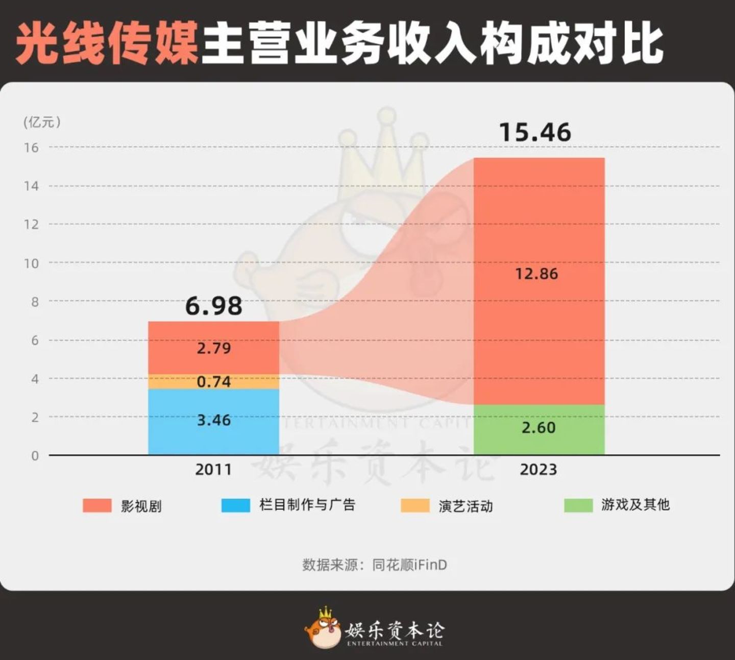 2014年,光线开始大幅削减综艺业务;2015年,栏目制作与广告收入下降至2015年的五分之一,而这也是栏目制作留在光线年报上的最后一年。光线这一场大刀阔斧的转型则是内因与外因共同促成的结果。
