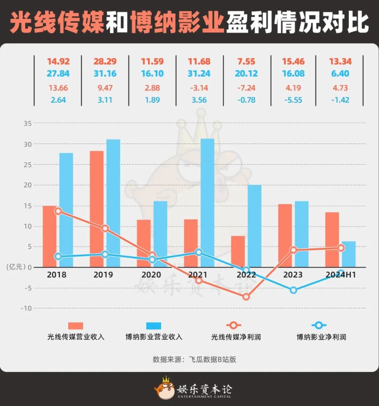 光线传媒和博纳影业盈利情况对比