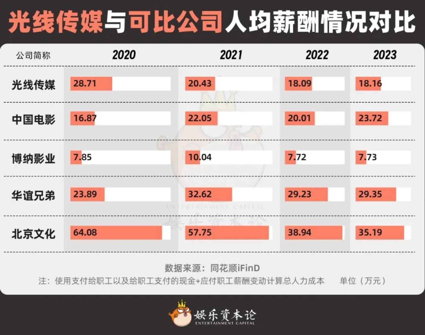 光线传媒与可比公司人均薪酬情况对比