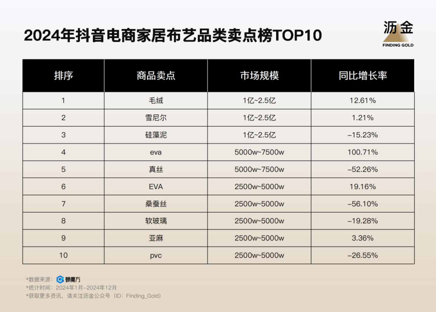 以家居家纺品类为例,2023年上半年,天猫毛绒布艺类产品销售额激增29.2%,其中200-400元价位段增长最猛。抖音电商也符合这个特征,2024年“毛绒”质地的卖点体量最大,并且保持了较高的增长速度。