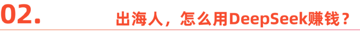 现在大家确实焦虑感比较重,我觉得这可能是一波机会,另外的话,我们今天是关于出海方向的讨论,因为毕竟DeepSeek是中国人开发出来的开源的大模型的底座。那其实拿着这样一个非常好的锤子,然后去海外各种市场去做很多事情,包括我是听说到好像现在是在跨境电商领域里面用的是比较多的,那么这是一块。