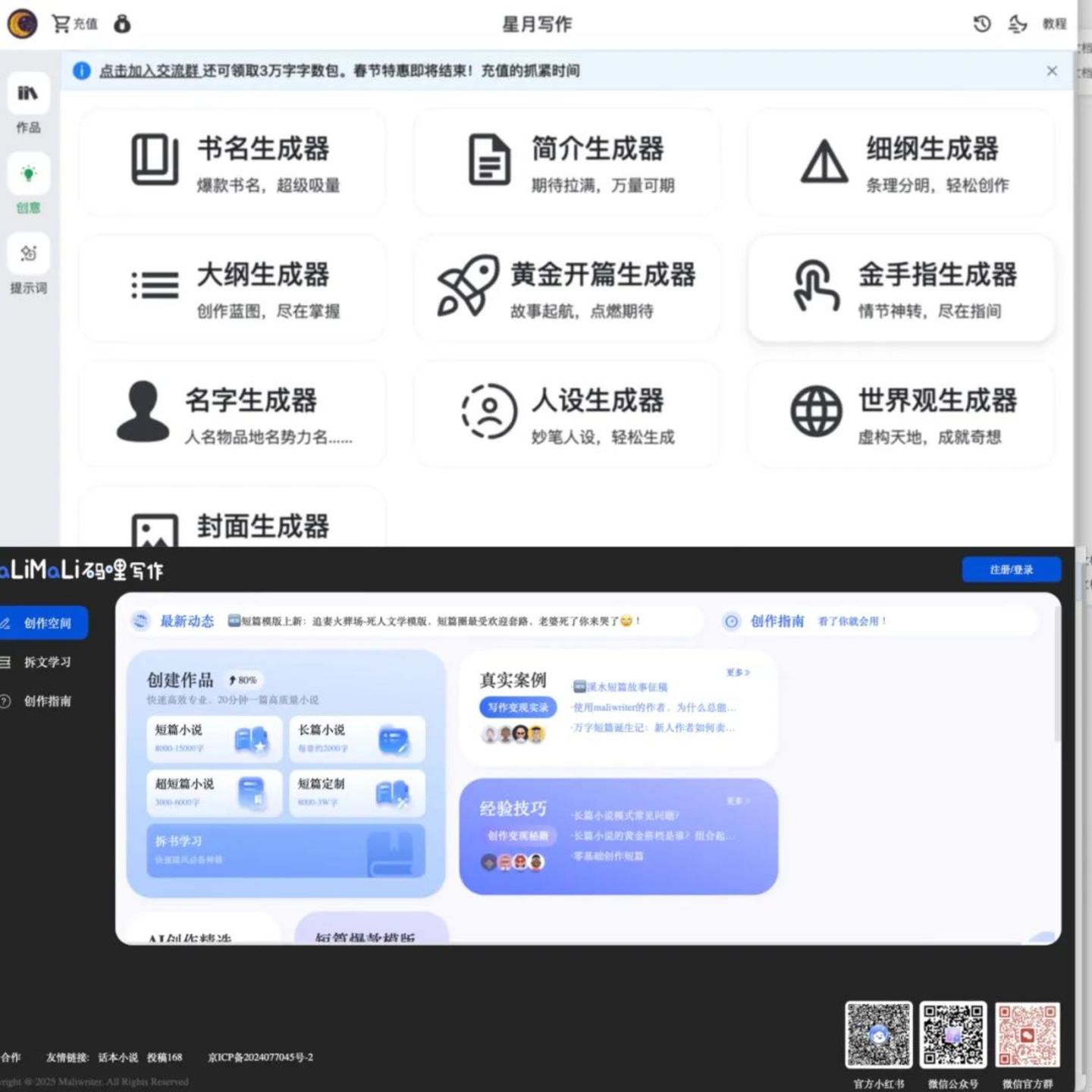 技术发展在前,平台和编辑反应在后,这种对技术的天然滞后性也养活了背后一批「卖铲子」的人——辅助AI网文的和反AI的都火了。