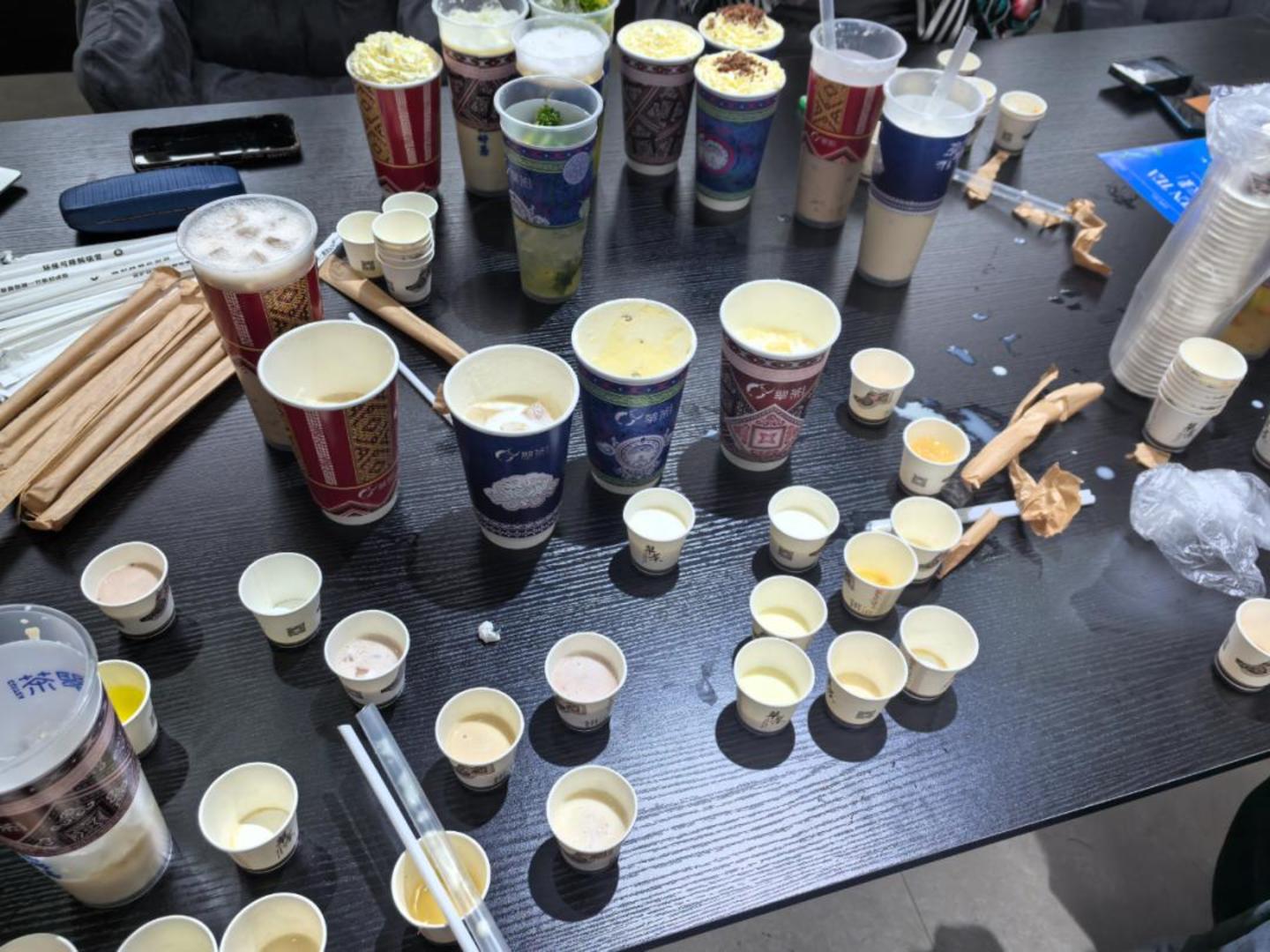 为了更加精细地打磨口感,翠茶里每两个月上新品之前会组织一场品鉴会。召集老客户、店长、研发团队和公司的人,大约20人左右,在星期一的八九点钟一起品尝。不同口味、不同糖分、不同冰度,每次都要喝20杯左右,喝得晚上都睡不着觉,甚至还会吐,王志恒现在长胖了,平时也喝得少了。