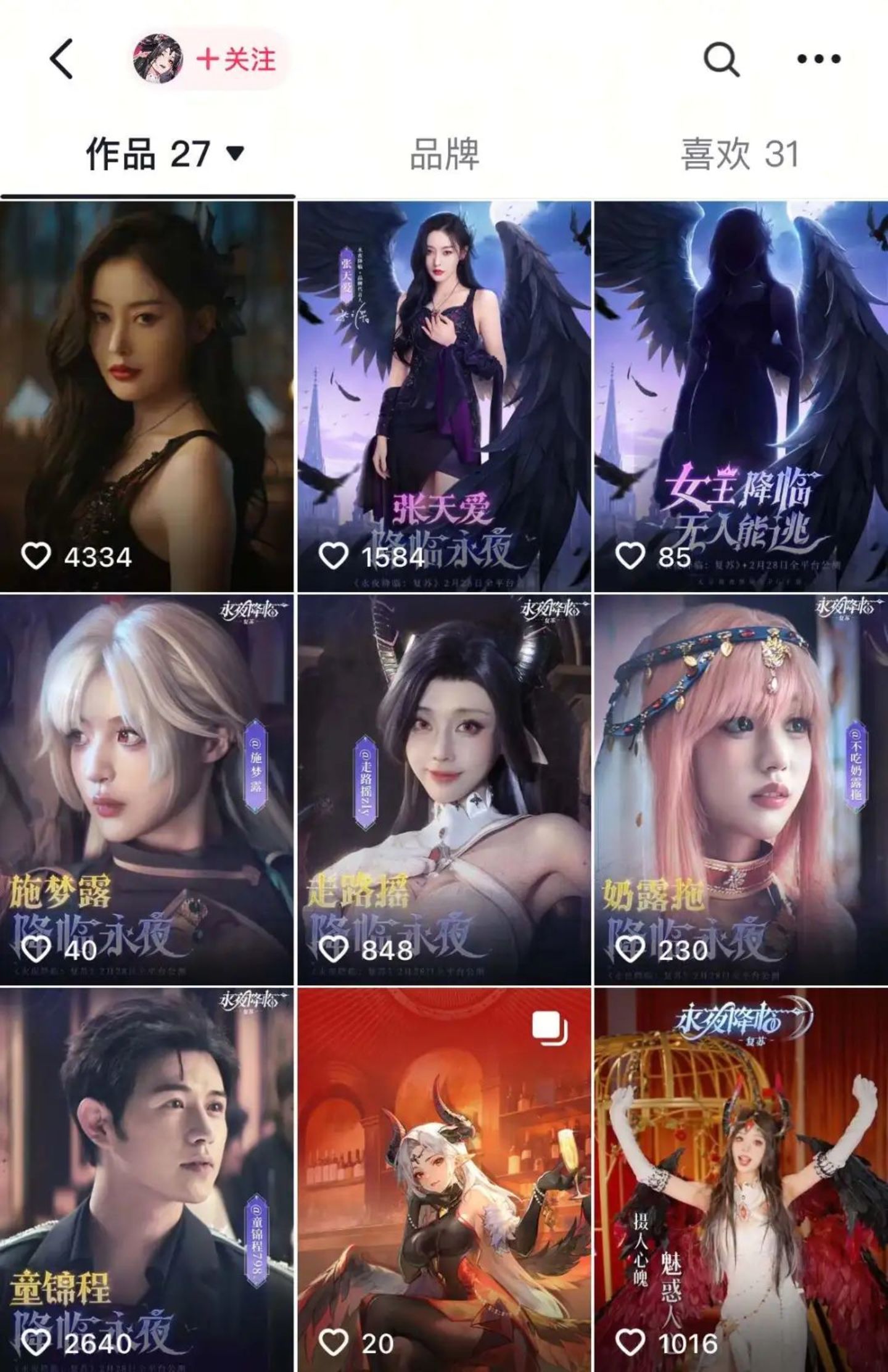 大手笔,全渠道营销。邀请张天爱担任代言人,结合“暗夜女王”人设定制剧情短片,内容与代言人调性与产品高度契合度。在抖音、B站投放,强化“暗黑美学”标签。并与垂直领域达人合作,拍摄短片,品效兼顾,但却又倾向后者。