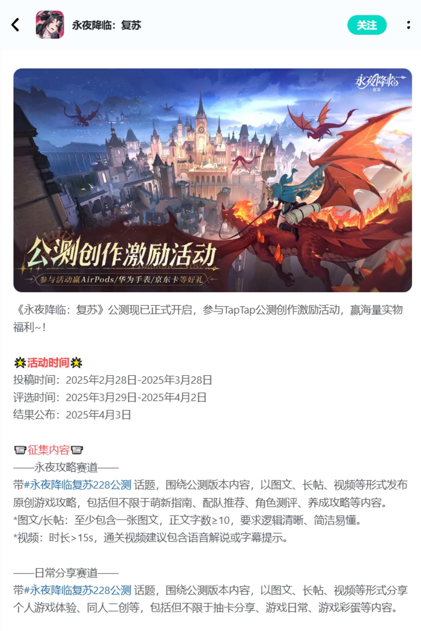 在TapTap开启创作者激励计划,征集内容分为两个赛道,奖励均为实物奖励。