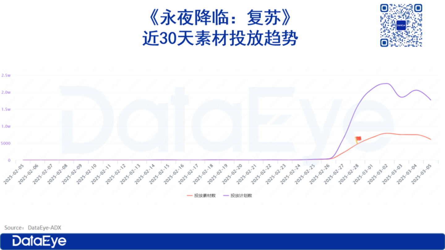 《永夜降临:复苏》的买量素材投放呈现以下几个特点: