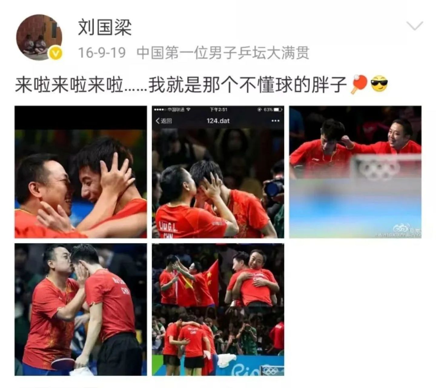 困境之下,国乒开始提出“第三次创业”的概念,第一次创业确立了中国乒乓球的优势地位;第二次创业奠定了霸主地位;而这一次,则是考虑竞技成绩以外的影响力。在后来的媒介叙事中,往往把2016年视作国乒的“饭圈元年”,一切都是从那句“张继科醒醒”开始的。再加上那句“不懂球的胖子”风靡全网,乘着里约奥运会的东风,国乒开始拥抱流量。2016年9月19日,刘国梁发出了个人第一条微博:“来啦来啦来啦……我就是那个不懂球的胖子。”