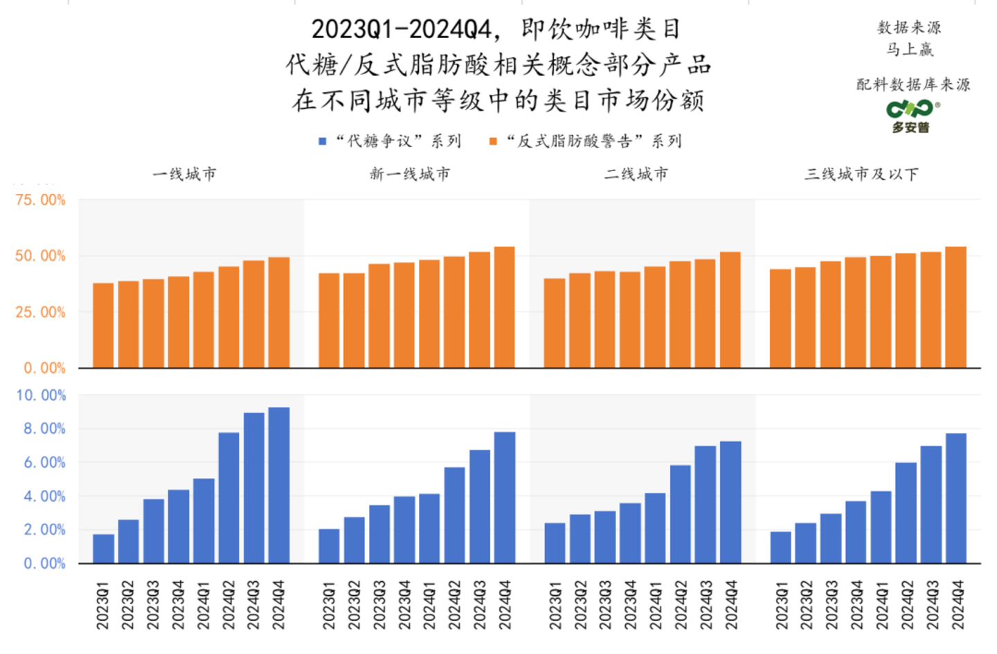 基于马上赢品牌CT中,2024年全年时间段,即饮咖啡/即饮奶茶两个类目各自的非组合装TOP20 SKU,以及多安普数据库(www.dap-data.com)中这些SKU的配料表、技术指标与配料的相关信息,通过从“配料-配料表-产品-市场销售”表现的全链路交叉/穿透,来观察两个类目TOP产品背后,消费者选择反映在产品配料表/配料上的趋势。