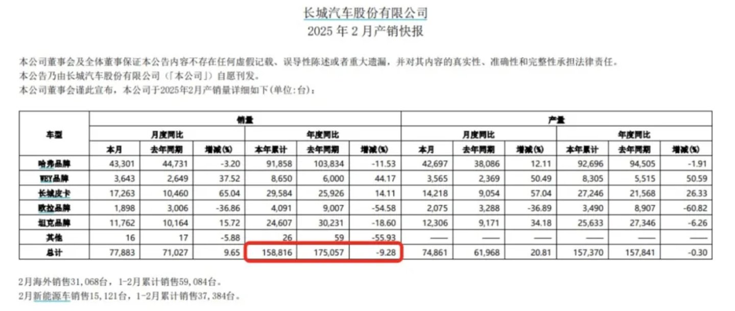 图/长城2025年2月产销快报