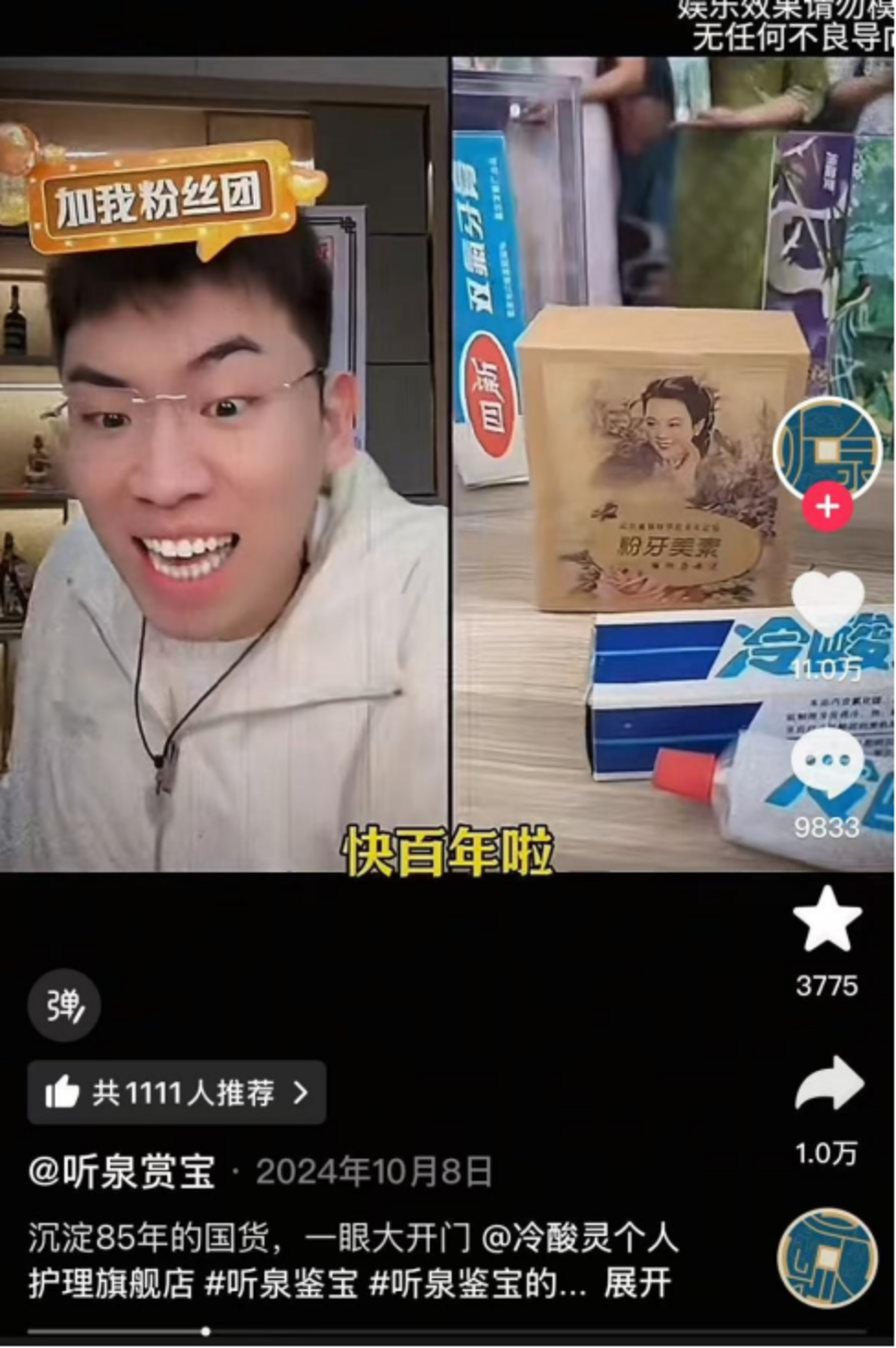 听泉鉴宝和冷酸灵的连麦带货,图/抖音