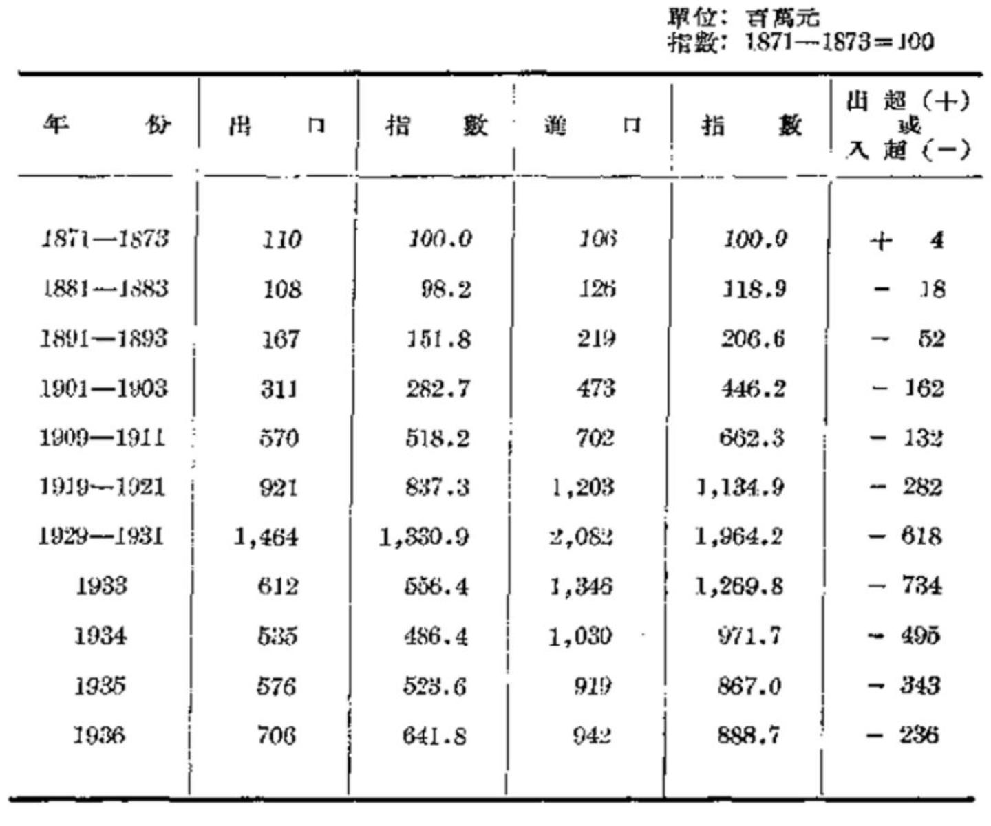 我国1871-1936年进出口贸易净值(来源:中国近代经济史统计资料选辑)