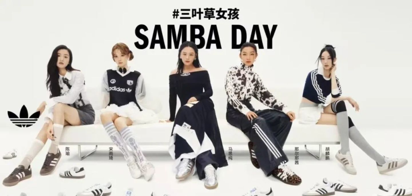 事实上,阿迪达斯风头正盛的德训鞋就是这么被带火的。2023年,阿迪达斯宣布发力它的复古Samba系列,于是它的全球代言人Jennie、以及她庞大的粉丝团开始频繁在社交网络上发布相关穿搭,成功带火了德训鞋、三叶草运动夹克和三叶草T恤。