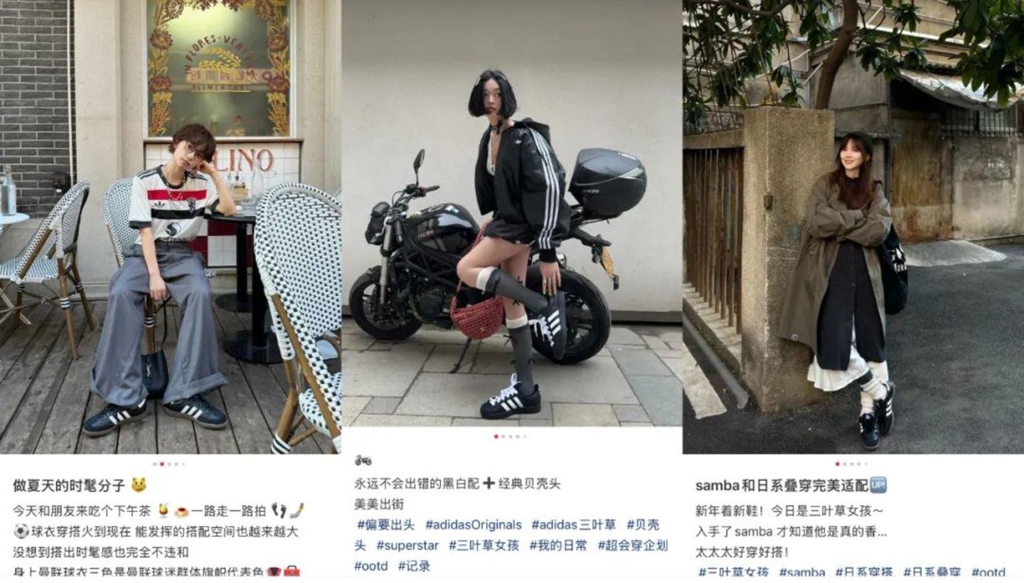 只不过,在这些成堆的“三叶草女孩”笔记中,刻意营销的痕迹多少有些重了。她们中有的是粉丝至少上千的穿搭博主,有的来自“x城x商场阿迪达斯店”,大家一起用一篇篇帖子,在社交网络上构建了一个专属于年轻人的时尚穿搭次元。