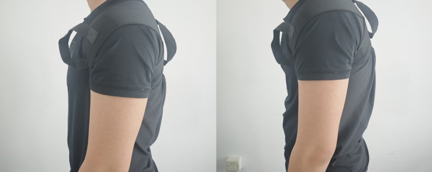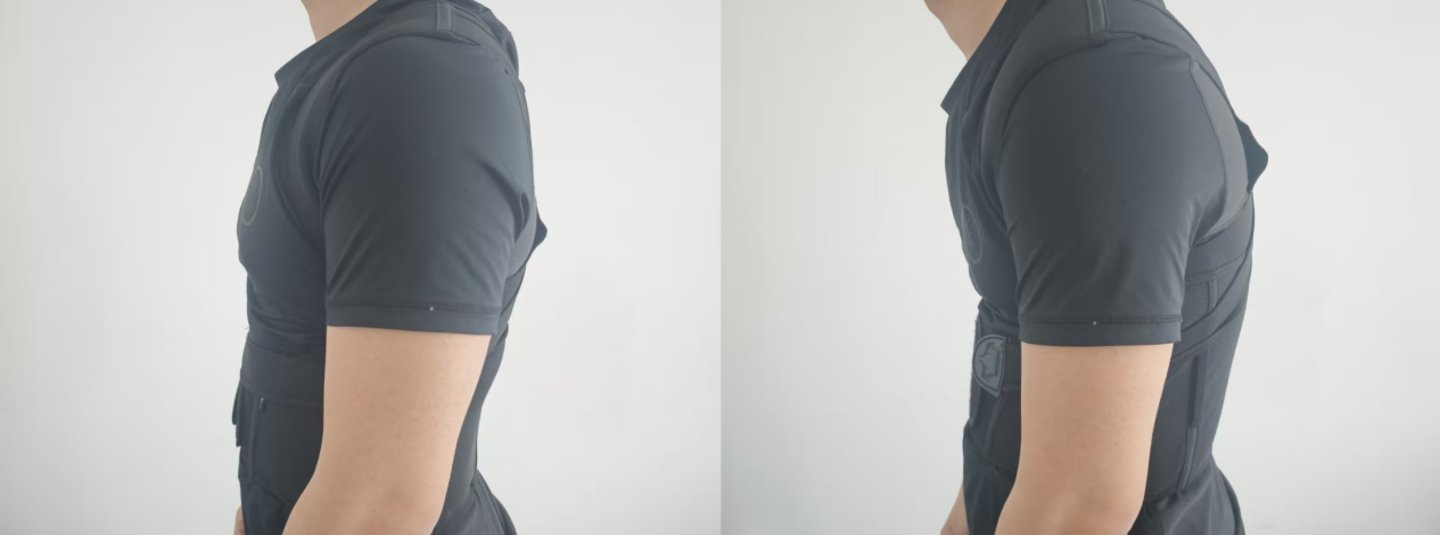 不过,虽然无法完全打开胸椎,但也还是有一定的拉力的,在具体使用过程中这个拉力却会让使用者不自觉地将头部向前伸开,处于一个头前引的姿态,在佩戴一个小时后,无法处于中立位的颈椎和酸痛的斜方肌,都让体验者感到十分难受。