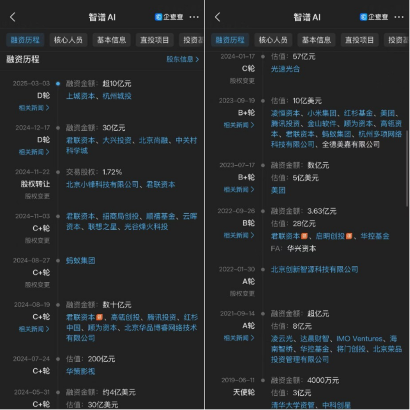 在此情况下,智谱AI(以下简称智谱)成为今年首个拿到新一轮风投的AI独角兽公司,因此备受关注。2025年3月,智谱开启D轮融资,投资方包括杭州城投、上城资本等,金额超10亿元。