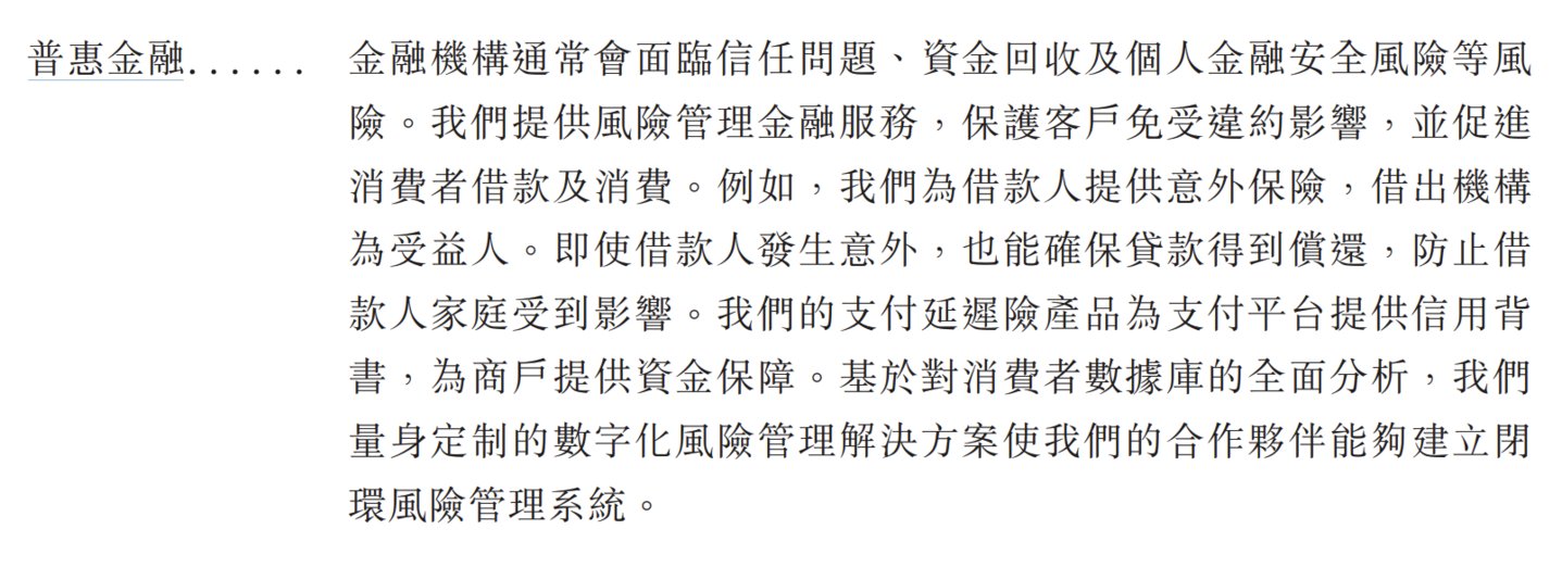 这里提到,“金融机构通常面临信任问题,资金回收及个人金融安全风险,我们提供风险管理金融服务,保护客户免受违约影响,并促进消费者借款及消费。”