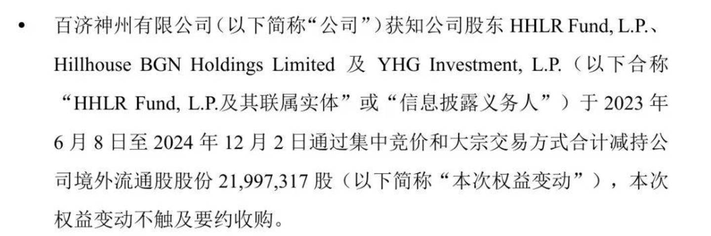 实际上,2023年6月8日至2024年12月2日,高瓴便通过集中竞价和大宗交易方式合计减持百济神州境外流通股股份2199.7万股,若按照111港元/股的平均持股价计算,减持套现约24亿港元。