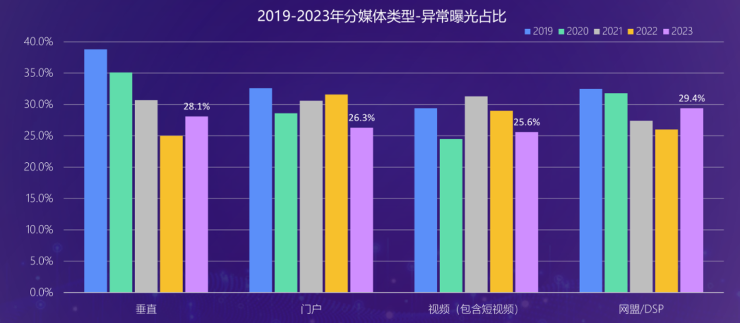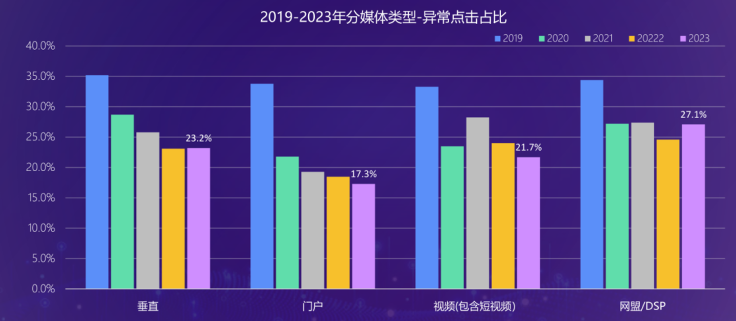 具体来看,垂直媒体、网盟/DSP是异常曝光和点击的重灾区,在2023年较去年有上升。